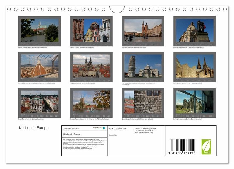 QUALITÄT - Hochwertiger Fotokalender mit 12 wunderschönen Motiven auf lichtbeständigem Bilderdruckpapier, robuste Spiralbindung mit Aufhängebügel.NACHHALTIG -deutliche Abfallreduzierung durch bedarfsgerechte Einzelstückfertigung, umweltfreundliches FSC-zertifiziertes Papier, Produktion in Deutschland, klimabewusste Logistik.PERFEKTES GESCHENK - Kalender für Freunde und Familie, für Kinder und Erwachsene, jung und alt, zu Weihnachten, Geburtstag oder zwischendurch.VIELFALT - Bildkalender in verschiedenen Formaten, z.B. DIN A5, DIN A4, DIN A3 sowie DIN A2. Ob Naturmotiv, Gemälde oder Fotos, ideal für ein persönliches Wohlfühlambiente.13 Kalenderblätter mit Kirchen aus Europa von Autor(in): Dietmar Falk