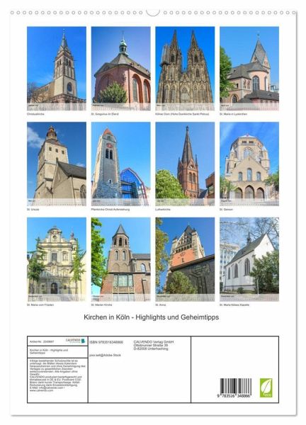 Der Kalender nimmt Sie mit auf einen Rundgang durch die Hansestadt Köln und zeigt Ihnen eine Auswahl der schönsten und prachtvollsten Kölner Kirchen. Genießen Sie die mehr oder weniger bekannten historischen Highlights der Domstadt.