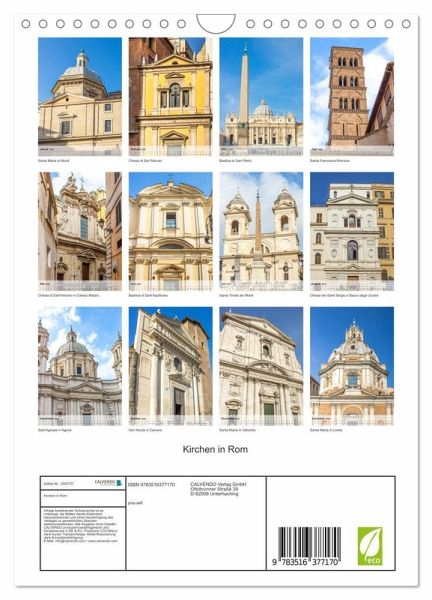 QUALITÄT - Hochwertiger Fotokalender mit 12 wunderschönen Motiven auf lichtbeständigem Bilderdruckpapier, robuste Spiralbindung mit Aufhängebügel.NACHHALTIG - deutliche Abfallreduzierung durch bedarfsgerechte Einzelstückfertigung, umweltfreundliches FSC-zertifiziertes Papier, Produktion in Deutschland, klimabewusste Logistik.PERFEKTES GESCHENK - Kalender für Freunde und Familie, für Kinder und Erwachsene, jung und alt, zu Weihnachten, Geburtstag oder zwischendurch.VIELFALT - Bildkalender in verschiedenen Formaten, z.B. DIN A5, DIN A4, DIN A3 sowie DIN A2. Ob Naturmotiv, Gemälde oder Fotos, ideal für ein persönliches Wohlfühlambiente.Der Kalender gibt Einblicke in die Vielzahl von eindrucksvollen Gotteshäusern in der ehemaligen Hauptstadt des Römischen Reichs und des kulturellen Zentrums Italiens, Rom. von Autor(in): Fabian Junge