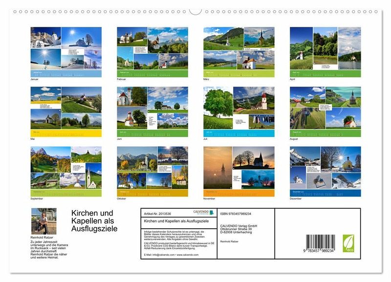 PREMIUM-LINIE - Brillanter Fotokalender mit 12 wunderschönen Motiven, Kunstdruck in Hochglanz in Museumsqualität.QUALITÄT - edle Materialien, stabile Rückwand mit 2 innovativen Einstecktaschen für eine optimale Präsentation an der Wand.NACHHALTIG - deutliche Abfallreduzierung durch bedarfsgerechte Einzelstückfertigung, umweltfreundliches FSC-zertifiziertes Papier, Produktion in Deutschland, klimabewusste Logistik.PERFEKTES GESCHENK - Kalender für Freunde und Familie, für Kinder und Erwachsene, jung und alt, zu Weihnachten, Geburtstag oder zwischendurch.Genießen Sie herrliche Ausflüge zu romantischen Kirchen und Kapellen im Allgäu und in Tirol. von Autor(in): Reinhold Ratzer