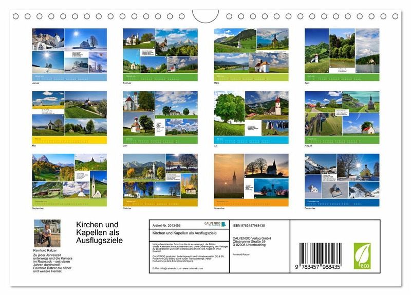 QUALITÄT - Hochwertiger Fotokalender mit 12 wunderschönen Motiven auf lichtbeständigem Bilderdruckpapier, robuste Spiralbindung mit Aufhängebügel.NACHHALTIG - deutliche Abfallreduzierung durch bedarfsgerechte Einzelstückfertigung, umweltfreundliches FSC-zertifiziertes Papier, Produktion in Deutschland, klimabewusste Logistik.PERFEKTES GESCHENK - Kalender für Freunde und Familie, für Kinder und Erwachsene, jung und alt, zu Weihnachten, Geburtstag oder zwischendurch.VIELFALT - Bildkalender in verschiedenen Formaten, z.B. DIN A5, DIN A4, DIN A3 sowie DIN A2. Ob Naturmotiv, Gemälde oder Fotos, ideal für ein persönliches Wohlfühlambiente.Genießen Sie herrliche Ausflüge zu romantischen Kirchen und Kapellen im Allgäu und in Tirol. von Autor(in): Reinhold Ratzer