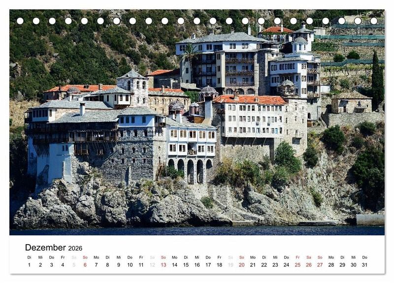 Dieser Kalender zeigt auf 13 Fotos eine abwechslungsreiche Auswahl griechischer Kirchen, Kathedralen, Kapellen und Klöster.
