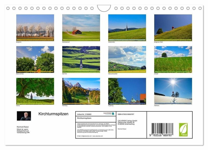 QUALITÄT - Hochwertiger Fotokalender mit 12 wunderschönen Motiven auf lichtbeständigem Bilderdruckpapier, robuste Spiralbindung mit Aufhängebügel.NACHHALTIG - deutliche Abfallreduzierung durch bedarfsgerechte Einzelstückfertigung, umweltfreundliches FSC-zertifiziertes Papier, Produktion in Deutschland, klimabewusste Logistik.PERFEKTES GESCHENK - Kalender für Freunde und Familie, für Kinder und Erwachsene, jung und alt, zu Weihnachten, Geburtstag oder zwischendurch.VIELFALT - Bildkalender in verschiedenen Formaten, z.B. DIN A5, DIN A4, DIN A3 sowie DIN A2. Ob Naturmotiv, Gemälde oder Fotos, ideal für ein persönliches Wohlfühlambiente.Schüchtern, vorwitzig und manchmal stolz recken sich die Kirchturmspitzen dem Wanderer überraschend entgegen. von Autor(in): Reinhold Ratzer
