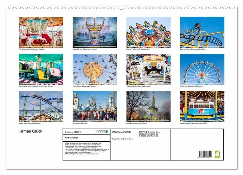 QUALITÄT - Hochwertiger Fotokalender mit 12 wunderschönen Motiven auf lichtbeständigem Bilderdruckpapier, robuste Spiralbindung mit Aufhängebügel.NACHHALTIG - deutliche Abfallreduzierung durch bedarfsgerechte Einzelstückfertigung, umweltfreundliches FSC-zertifiziertes Papier, Produktion in Deutschland, klimabewusste Logistik.PERFEKTES GESCHENK - Kalender für Freunde und Familie, für Kinder und Erwachsene, jung und alt, zu Weihnachten, Geburtstag oder zwischendurch.VIELFALT - Bildkalender in verschiedenen Formaten, z.B. DIN A5, DIN A4, DIN A3 sowie DIN A2. Ob Naturmotiv, Gemälde oder Fotos, ideal für ein persönliches Wohlfühlambiente.Brillante Fotografien von Festen, Jahrmärkten und Karussells von Autor(in): Dietmar Scherf