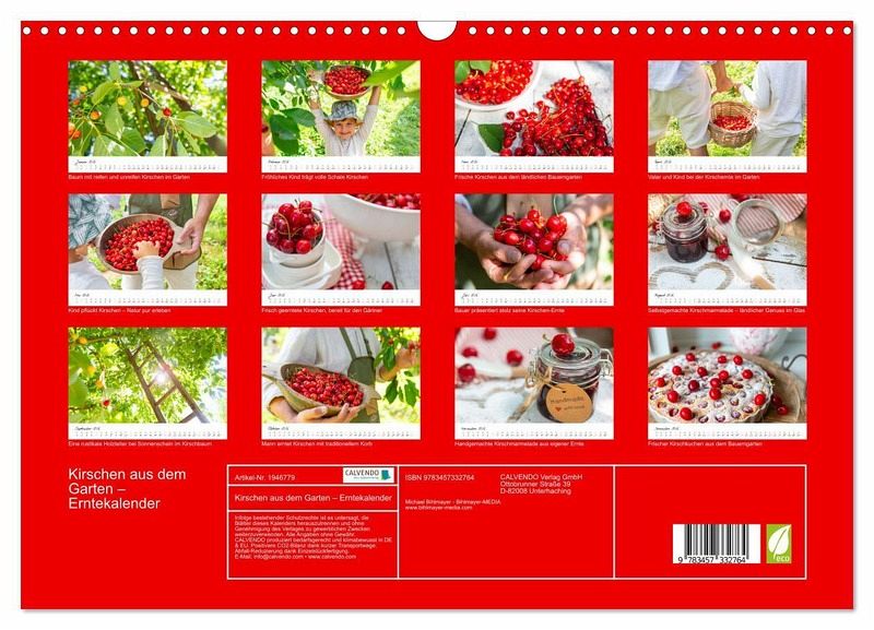 QUALITÄT - Hochwertiger Fotokalender mit 12 wunderschönen Motiven auf lichtbeständigem Bilderdruckpapier, robuste Spiralbindung mit Aufhängebügel.NACHHALTIG - deutliche Abfallreduzierung durch bedarfsgerechte Einzelstückfertigung, umweltfreundliches FSC-zertifiziertes Papier, Produktion in Deutschland, klimabewusste Logistik.PERFEKTES GESCHENK - Kalender für Freunde und Familie, für Kinder und Erwachsene, jung und alt, zu Weihnachten, Geburtstag oder zwischendurch.VIELFALT - Bildkalender in verschiedenen Formaten, z.B. DIN A5, DIN A4, DIN A3 sowie DIN A2. Ob Naturmotiv, Gemälde oder Fotos, ideal für ein persönliches Wohlfühlambiente.Ländliche Kirschernte im Fokus - Bilder voller Natur, Gartenarbeit und dem ländlichen Charme der Kirschenzeit von Autor(in): Michael Bihlmayer
