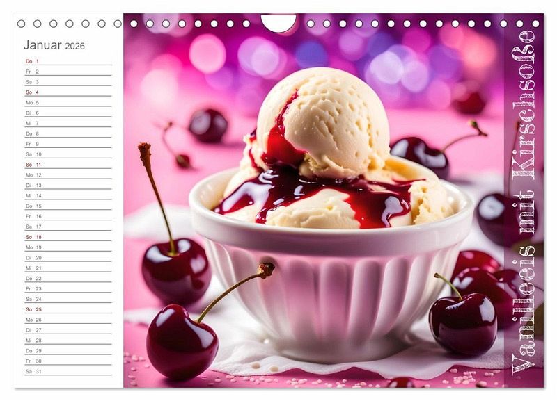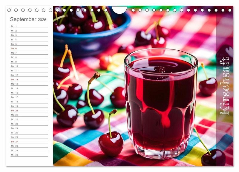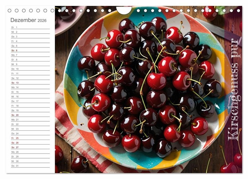 Entdecken Sie die köstliche Welt der Kirschen! Unser exklusiver Kalender präsentiert jeden Monat atemberaubende, KI-generierte Bilder von verführerischen Gerichten und erfrischenden Getränken, die alle von der Süße der Kirsche inspiriert sind. Lassen Sie sich von den kreativen Bildern inspirieren und genießen Sie das ganze Jahr über die Vielfalt dieser wunderbaren Frucht. Holen Sie sich Ihre Kirschlust und machen Sie ihr Jahr zu einem kulinarischen Highlight!