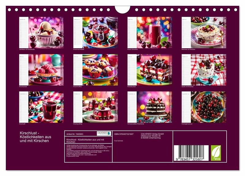 QUALITÄT - Hochwertiger Fotokalender mit 12 wunderschönen Motiven auf lichtbeständigem Bilderdruckpapier, robuste Spiralbindung mit Aufhängebügel.NACHHALTIG - deutliche Abfallreduzierung durch bedarfsgerechte Einzelstückfertigung, umweltfreundliches FSC-zertifiziertes Papier, Produktion in Deutschland, klimabewusste Logistik.PERFEKTES GESCHENK - Kalender für Freunde und Familie, für Kinder und Erwachsene, jung und alt, zu Weihnachten, Geburtstag oder zwischendurch.VIELFALT - Bildkalender in verschiedenen Formaten, z.B. DIN A5, DIN A4, DIN A3 sowie DIN A2. Ob Naturmotiv, Gemälde oder Fotos, ideal für ein persönliches Wohlfühlambiente.Verführerische KI Gerichte und Getränke aus Kirschen. von Autor(in): Michaela Spreider