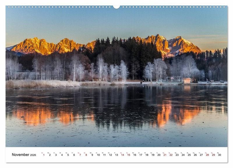 November: Der Wilde Kaiser spiegelt sich im Eis