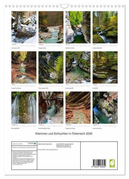 QUALITÄT - Hochwertiger Fotokalender mit 12 wunderschönen Motiven auf lichtbeständigem Bilderdruckpapier, robuste Spiralbindung mit Aufhängebügel.NACHHALTIG - deutliche Abfallreduzierung durch bedarfsgerechte Einzelstückfertigung, umweltfreundliches FSC-zertifiziertes Papier, Produktion in Deutschland, klimabewusste Logistik.PERFEKTES GESCHENK - Kalender für Freunde und Familie, für Kinder und Erwachsene, jung und alt, zu Weihnachten, Geburtstag oder zwischendurch.VIELFALT - Bildkalender in verschiedenen Formaten, z.B. DIN A5, DIN A4, DIN A3 sowie DIN A2. Ob Naturmotiv, Gemälde oder Fotos, ideal für ein persönliches Wohlfühlambiente.Ansichten aus Österreichs faszinierenden Klammen und Schluchten von Autor(in): Sonja Jordan