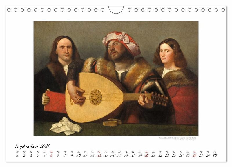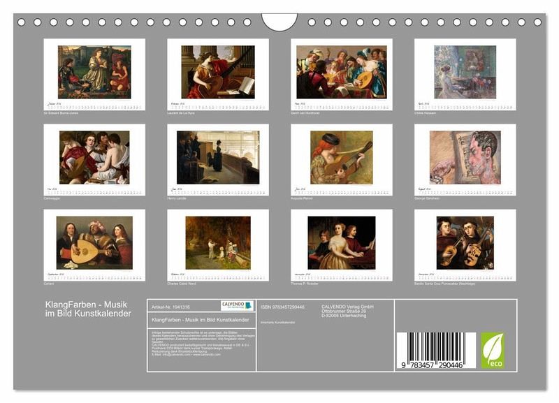 Vom Zauber der Musik. Töne berühren die Seele, beseelen das Bild. Von Caravaggio über Renoir bis Gershwin. Dieser stimmungsvolle Kunstkalender zeigt malerische Klangwelten von der Renaissance bis zur Moderne.