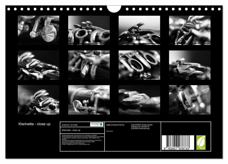 QUALITÄT - Hochwertiger Fotokalender mit 12 wunderschönen Motiven auf lichtbeständigem Bilderdruckpapier, robuste Spiralbindung mit Aufhängebügel.NACHHALTIG - deutliche Abfallreduzierung durch bedarfsgerechte Einzelstückfertigung, umweltfreundliches FSC-zertifiziertes Papier, Produktion in Deutschland, klimabewusste Logistik.PERFEKTES GESCHENK - Kalender für Freunde und Familie, für Kinder und Erwachsene, jung und alt, zu Weihnachten, Geburtstag oder zwischendurch.VIELFALT - Bildkalender in verschiedenen Formaten, z.B. DIN A5, DIN A4, DIN A3 sowie DIN A2. Ob Naturmotiv, Gemälde oder Fotos, ideal für ein persönliches Wohlfühlambiente.Detailaufnahmen einer Klarinette von Autor(in): Silvia Drafz