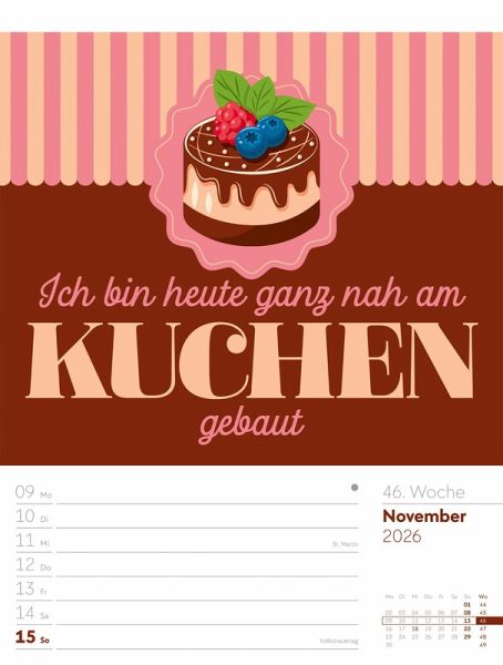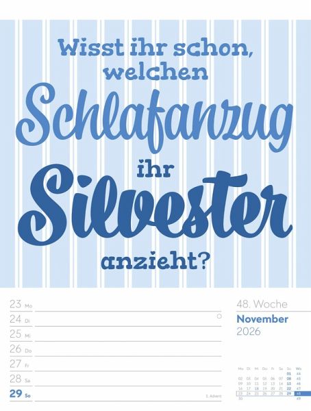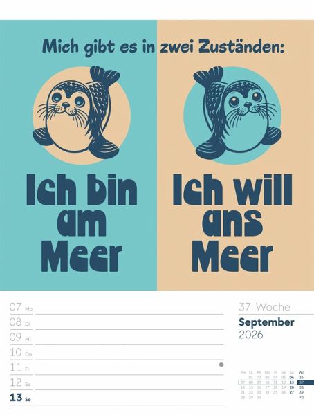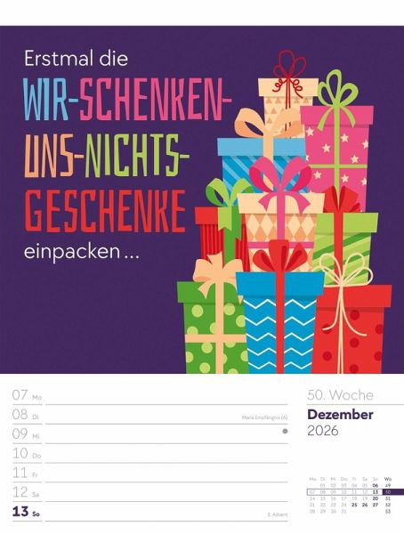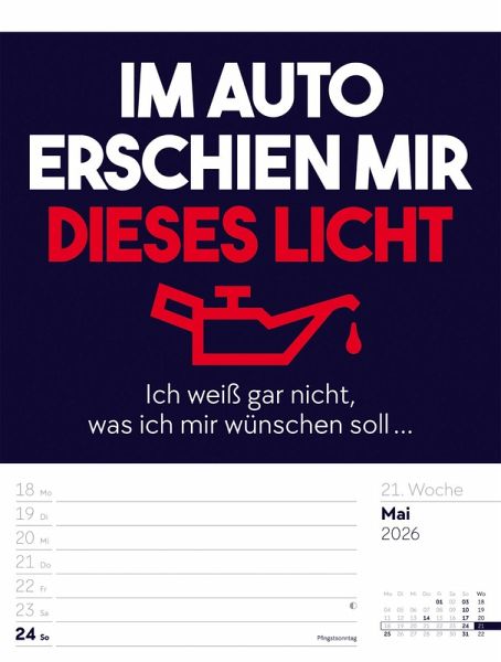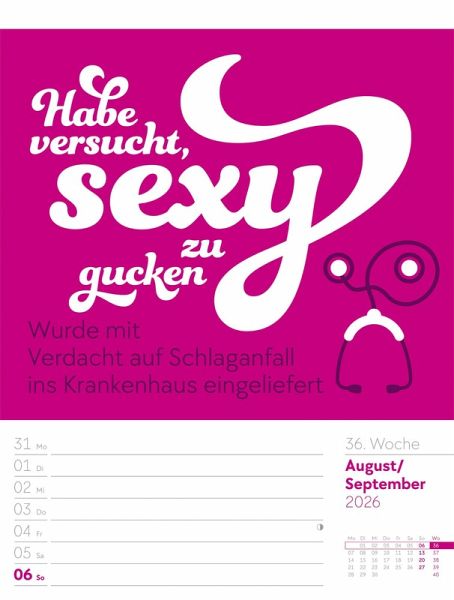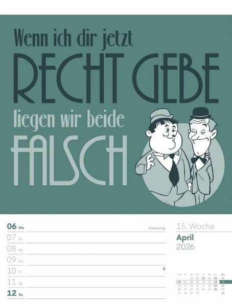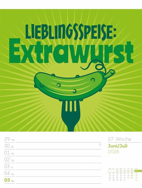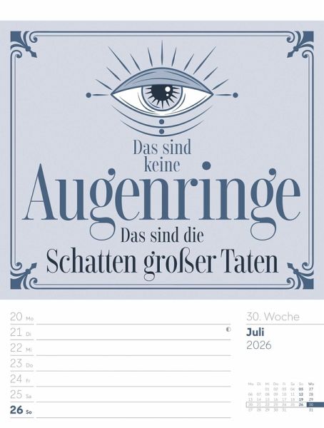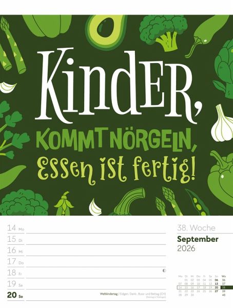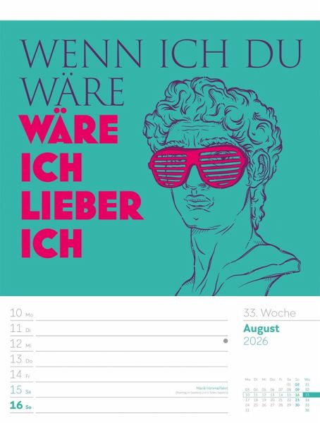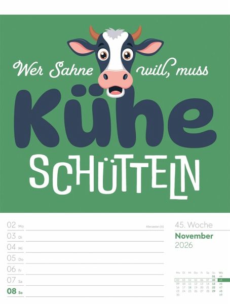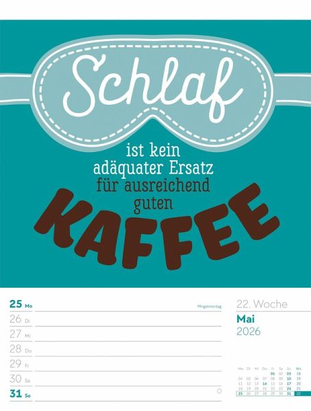 Wochenkalender mit 53 frechen und typografisch perfekt inszenierten Sprüchen Sprüche-Kalender im Hochformat: 25x33 cm Mit übersichtlichem Eintragekalendarium sowie Kreuzworträtseln und Sudokus auf jeder Rückseite Auf Papier aus nachhaltiger Forstwirtschaft in Deutschland produziert, mit Spiralbindung Leistet einen Beitrag zum Ackermann Firmenwald Deutschsprachiges Kalendarium