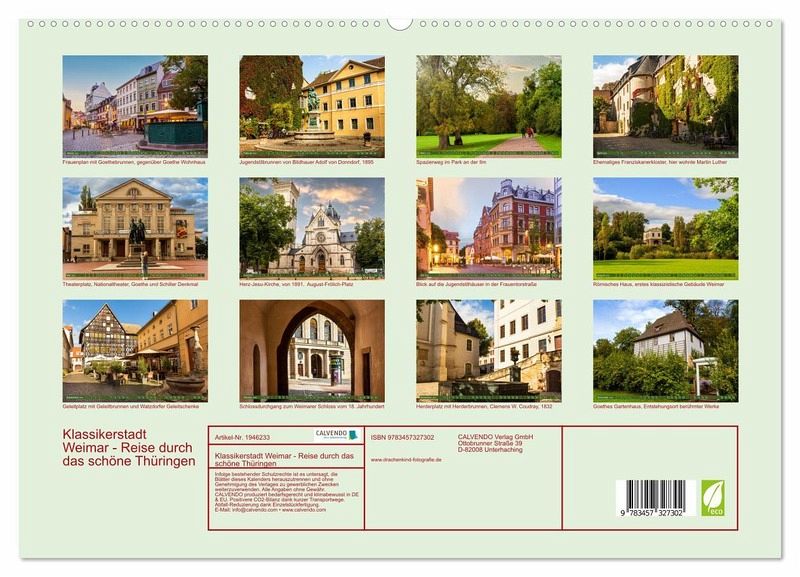PREMIUM-LINIE - Brillanter Fotokalender mit 12 wunderschönen Motiven, Kunstdruck in Hochglanz in Museumsqualität.QUALITÄT - edle Materialien, stabile Rückwand mit 2 innovativen Einstecktaschen für eine optimale Präsentation an der Wand.NACHHALTIG - deutliche Abfallreduzierung durch bedarfsgerechte Einzelstückfertigung, umweltfreundliches FSC-zertifiziertes Papier, Produktion in Deutschland, klimabewusste Logistik.PERFEKTES GESCHENK - Kalender für Freunde und Familie, für Kinder und Erwachsene, jung und alt, zu Weihnachten, Geburtstag oder zwischendurch.Weimar: Kultur, Geschichte und Natur von Autor(in): drachenkind-fotografie