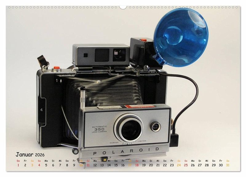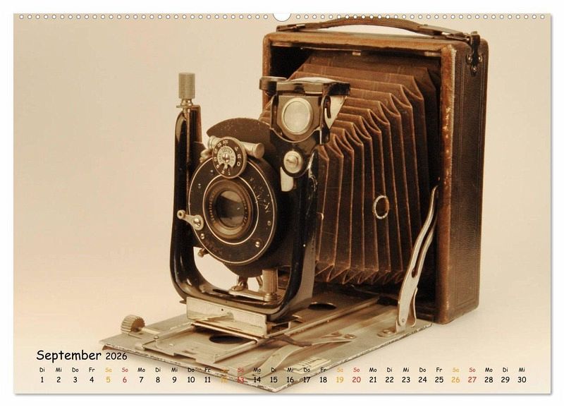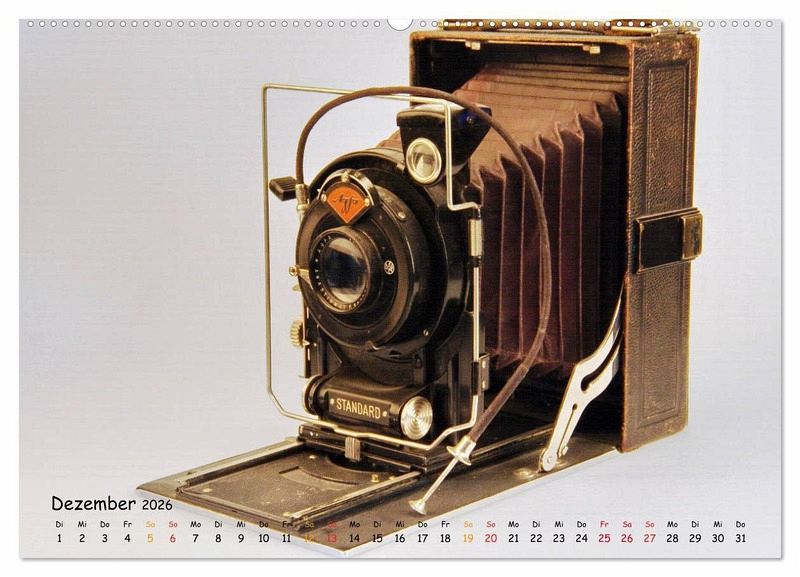 Schweben Sie mit diesen historischen Motiven von alten Fotoapparaten ein ganzes Jahr lang in der Vergangenheit der Fotografie. Das perfekte Geschenk für Kamera Sammler und Freunde der Fotografie.