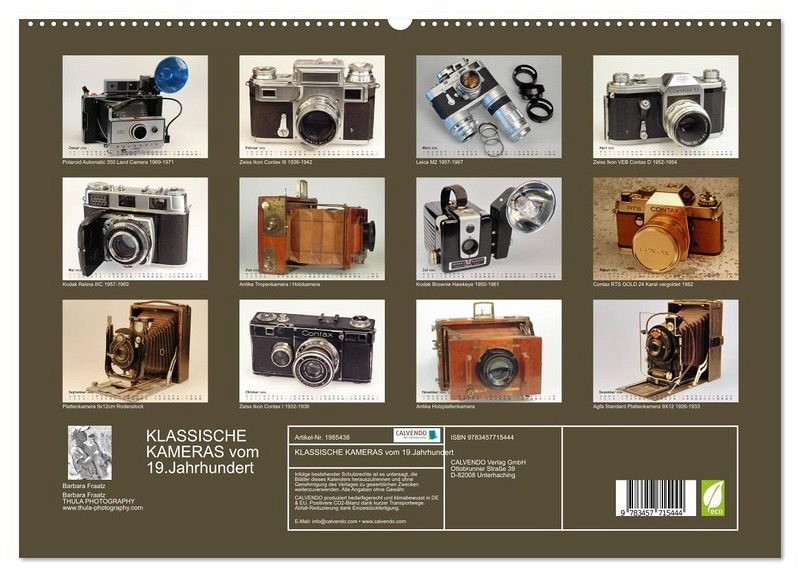PREMIUM-LINIE - Brillanter Fotokalender mit 12 wunderschönen Motiven, Kunstdruck in Hochglanz in Museumsqualität.QUALITÄT - edle Materialien, stabile Rückwand mit 2 innovativen Einstecktaschen für eine optimale Präsentation an der Wand.NACHHALTIG - deutliche Abfallreduzierung durch bedarfsgerechte Einzelstückfertigung, umweltfreundliches FSC-zertifiziertes Papier, Produktion in Deutschland, klimabewusste Logistik.PERFEKTES GESCHENK - Kalender für Freunde und Familie, für Kinder und Erwachsene, jung und alt, zu Weihnachten, Geburtstag oder zwischendurch.Ein hochwertiger Fotojahreskalender mit interessanten und klassischen Kamera-Motiven aus der Vergangenheit der Fotografie. von Autor(in): Thula
