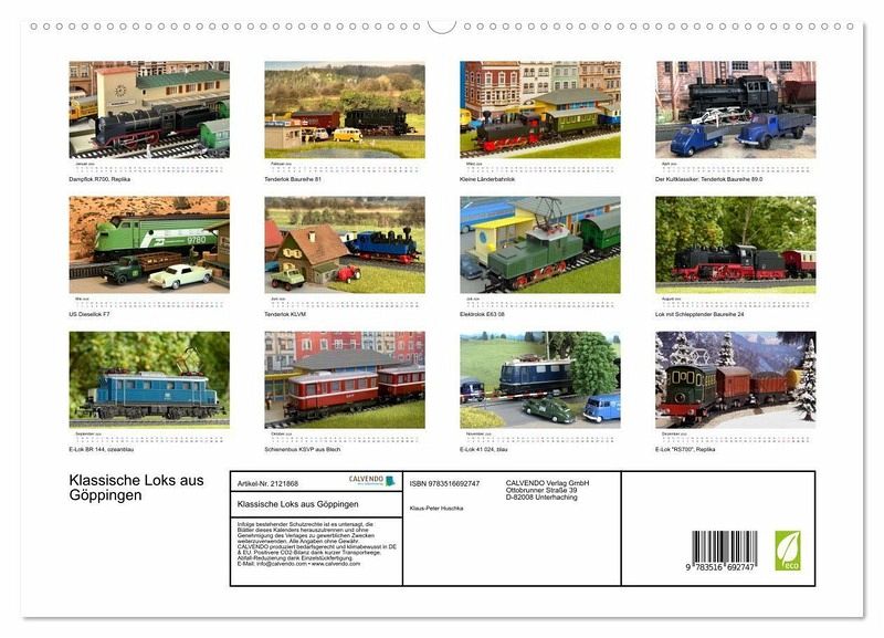 Entdecken Sie die Schönheit und die Geschichte der Eisenbahn mit unserem neuen Kalender, der die schönsten alten Lokmodelle aus unseren Kindertagen präsentiert. Jeder Monat zeigt ein ikonisches Modell, sorgfältig ausgewählt und fotografiert, um die Faszination der Modellbahn zu vermitteln. Bewusst wurden keine hochpreisigen Sammlerstücke gewählt, sondern Modelle, die tausendfach durch Kinderhände gingen. Für jeden Eisenbahn-Fan, ob Sammler, Modellbauer oder einfach nur Eisenbahn-Enthusiast.