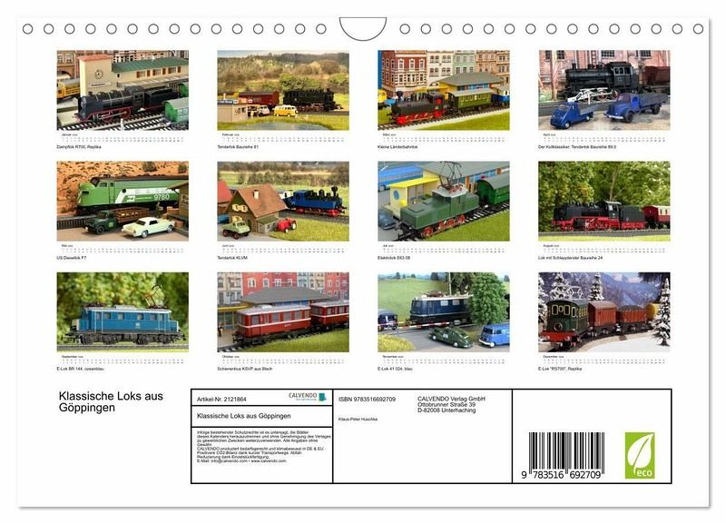 QUALITÄT - Hochwertiger Fotokalender mit 12 wunderschönen Motiven auf lichtbeständigem Bilderdruckpapier, robuste Spiralbindung mit Aufhängebügel.NACHHALTIG - deutliche Abfallreduzierung durch bedarfsgerechte Einzelstückfertigung, umweltfreundliches FSC-zertifiziertes Papier, Produktion in Deutschland, klimabewusste Logistik.PERFEKTES GESCHENK - Kalender für Freunde und Familie, für Kinder und Erwachsene, jung und alt, zu Weihnachten, Geburtstag oder zwischendurch.VIELFALT - Bildkalender in verschiedenen Formaten, z.B. DIN A5, DIN A4, DIN A3 sowie DIN A2. Ob Naturmotiv, Gemälde oder Fotos, ideal für ein persönliches Wohlfühlambiente.12 Monate, 12 Lokmodelle von Autor(in): Peter Huschka