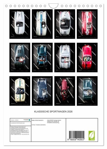 QUALITÄT - Hochwertiger Fotokalender mit 12 wunderschönen Motiven auf lichtbeständigem Bilderdruckpapier, robuste Spiralbindung mit Aufhängebügel.NACHHALTIG - deutliche Abfallreduzierung durch bedarfsgerechte Einzelstückfertigung, umweltfreundliches FSC-zertifiziertes Papier, Produktion in Deutschland, klimabewusste Logistik.PERFEKTES GESCHENK - Kalender für Freunde und Familie, für Kinder und Erwachsene, jung und alt, zu Weihnachten, Geburtstag oder zwischendurch.VIELFALT - Bildkalender in verschiedenen Formaten, z.B. DIN A5, DIN A4, DIN A3 sowie DIN A2. Ob Naturmotiv, Gemälde oder Fotos, ideal für ein persönliches Wohlfühlambiente.Klassische Sportwagen aus der Vogelperspektive von Autor(in): Thomas Gerwers