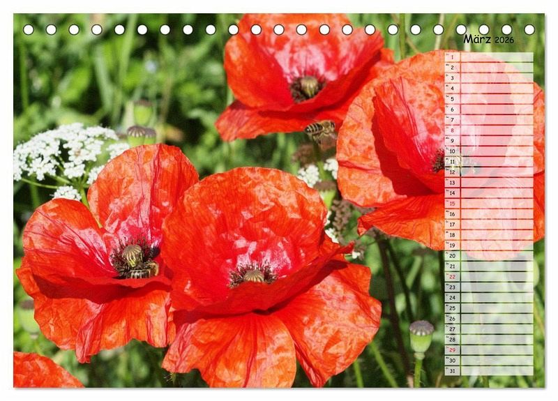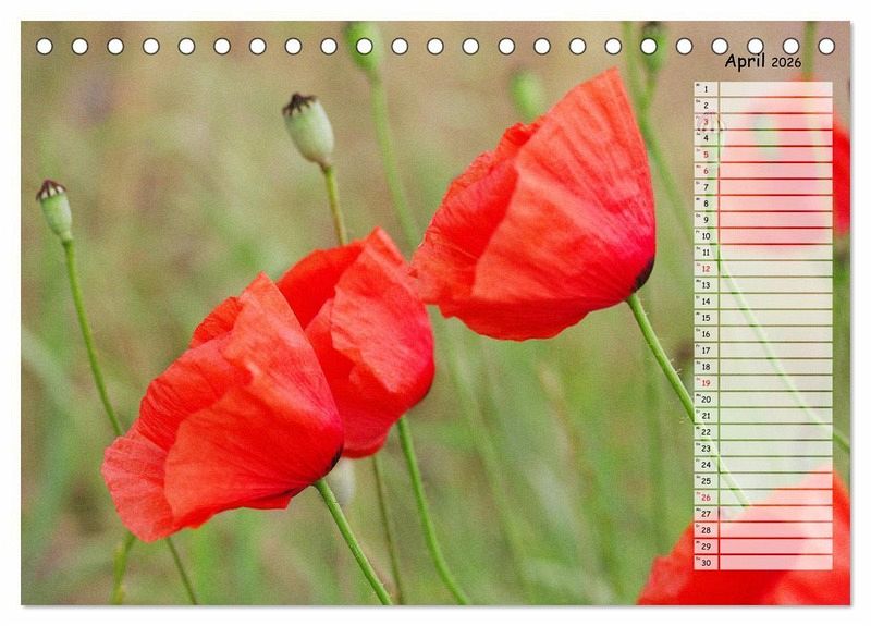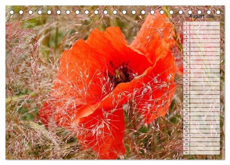 Mohnblüten sind das Synonym für den Sommer. Wenn der Wind über die Kornfelder streicht und die Farben darin zum Tanzen bringt, ist das immer wieder ein faszinierendes Schauspiel, das zum Träumen einlädt. Die leider so schnell verblühenden Mohnblumen sind mit diesem Kalender unsterblich und beglücken Sie ein volles Jahr.