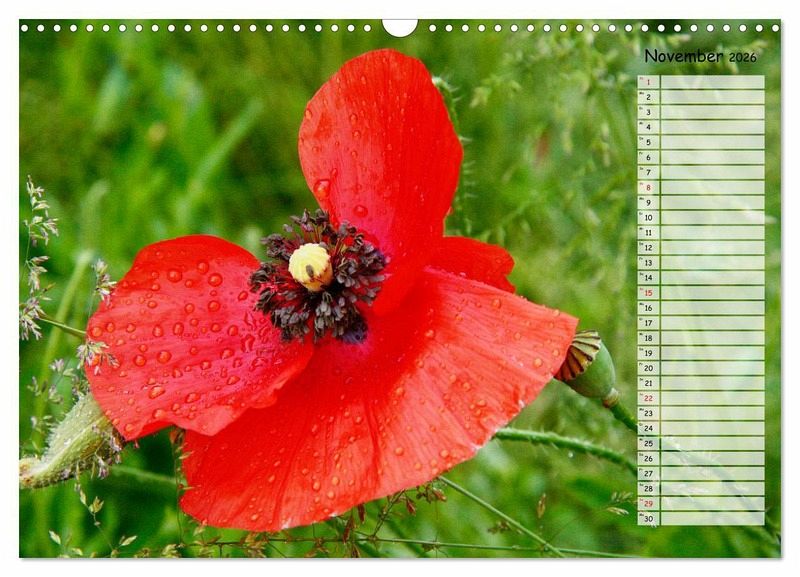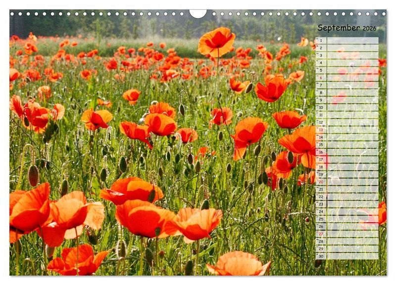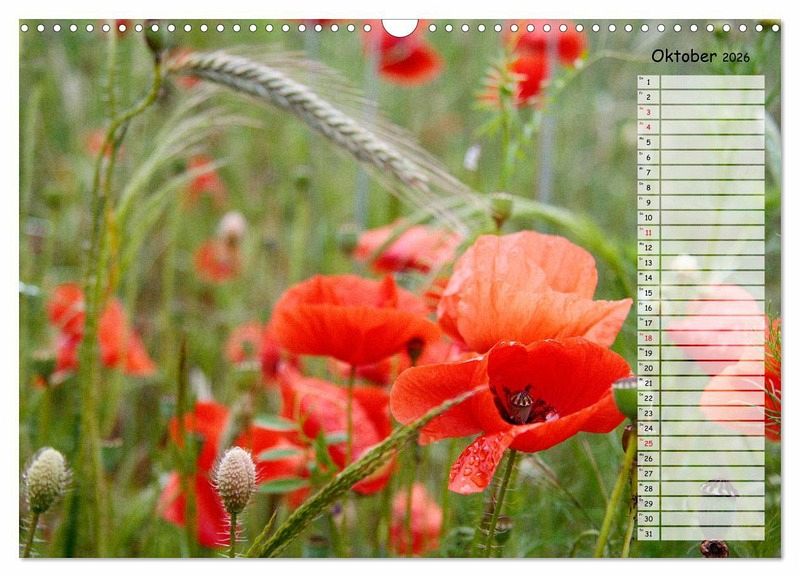 Mohnblüten sind das Synonym für den Sommer. Wenn der Wind über die Kornfelder streicht und die Farben darin zum Tanzen bringt, ist das immer wieder ein faszinierendes Schauspiel, das zum Träumen einlädt. Die leider so schnell verblühenden Mohnblumen sind mit diesem Kalender unsterblich und beglücken Sie ein volles Jahr.