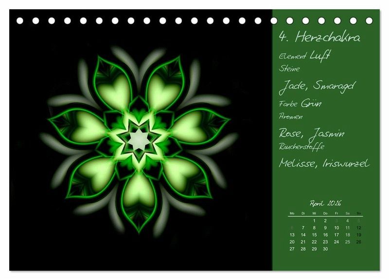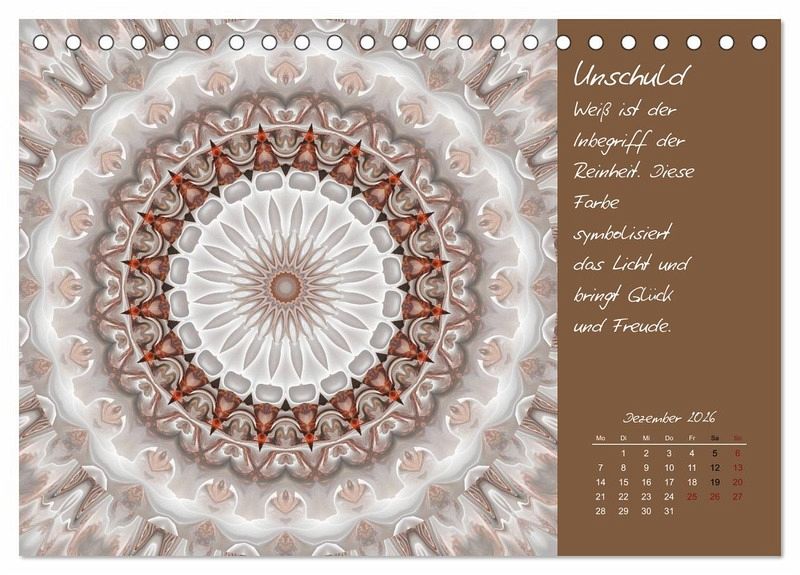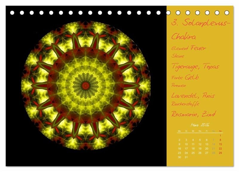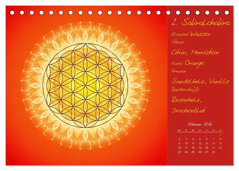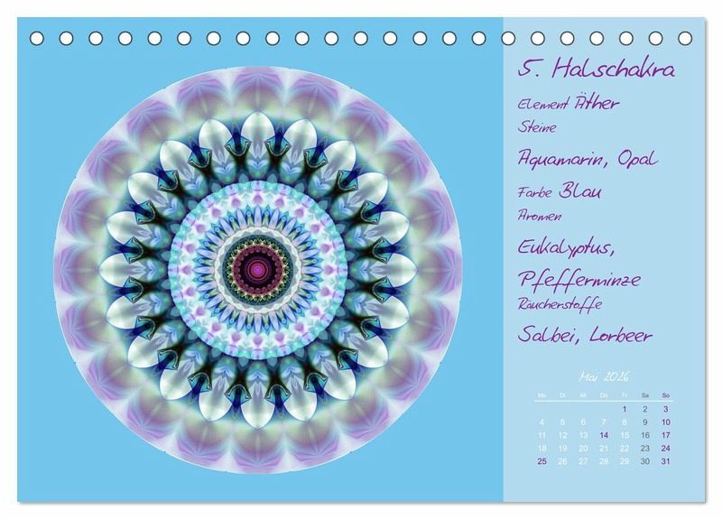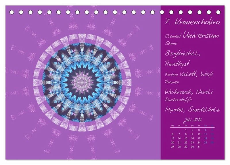 Ein wundervoll bebildeter Kalender mit farbigen Mandalas soll Ihnen die Bedeutung der sieben Chakren näher bringen. Sie erfahren mehr über die Eigenschaften und Farbwirkungen.