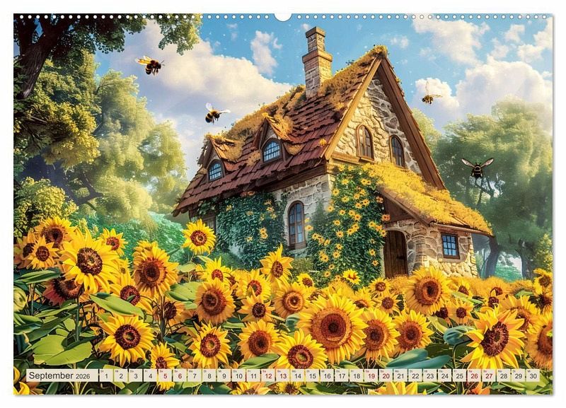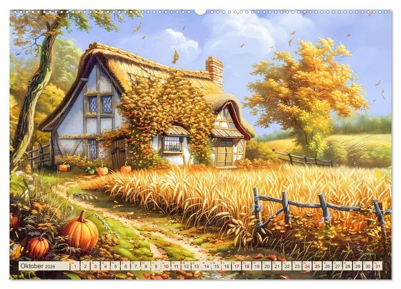 Tauchen Sie ein in die Welt der Cottages und lassen Sie sich von ihrem romantischen Charme verzaubern! Unser Kalender "Kleine Cottages - Romantische Fantasiehäuschen" entführt Sie Monat für Monat in idyllische KI-generierte Rückzugsorte, die zum Träumen einladen. Jedes Häuschen erzählt seine eigene Geschichte und versprüht einen ganz besonderen Zauber. Ideal als Geschenk für Liebhaber romantischer Landschaften und für alle, die sich nach einer Auszeit vom Alltag sehnen.