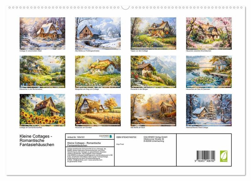 PREMIUM-LINIE - Brillanter Fotokalender mit 12 wunderschönen Motiven, Kunstdruck in Hochglanz in Museumsqualität.QUALITÄT - edle Materialien, stabile Rückwand mit 2 innovativen Einstecktaschen für eine optimale Präsentation an der Wand.NACHHALTIG - deutliche Abfallreduzierung durch bedarfsgerechte Einzelstückfertigung, umweltfreundliches FSC-zertifiziertes Papier, Produktion in Deutschland, klimabewusste Logistik.PERFEKTES GESCHENK - Kalender für Freunde und Familie, für Kinder und Erwachsene, jung und alt, zu Weihnachten, Geburtstag oder zwischendurch.Eine Welt voller zauberhafter Cottage-Idylle von Autor(in): Anja Frost