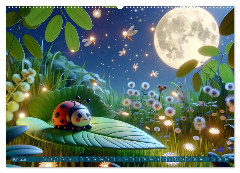 Entdecken Sie 'Kleine Käfer - große Abenteuer', den einzigartigen Kinderkalender! Jedes Blatt, ein Kunstwerk, erschaffen mit künstlicher Intelligenz, entführt in eine Welt voller Fantasie und Farbe. Monat für Monat begleiten Sie charmante Marienkäfer auf ihrer Reise durch die Jahreszeiten. Mit liebevoll gestalteten Szenen, die die Neugier wecken und zum Träumen einladen, ist dieser Kalender ein Fenster in eine magische Naturwelt. Ideal für kleine Entdecker und perfekt, um die Vorfreude auf jeden neuen Monat zu steigern!