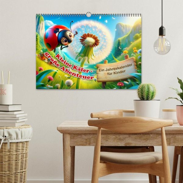 Entdecken Sie 'Kleine Käfer - große Abenteuer', den einzigartigen Kinderkalender! Jedes Blatt, ein Kunstwerk, erschaffen mit künstlicher Intelligenz, entführt in eine Welt voller Fantasie und Farbe. Monat für Monat begleiten Sie charmante Marienkäfer auf ihrer Reise durch die Jahreszeiten. Mit liebevoll gestalteten Szenen, die die Neugier wecken und zum Träumen einladen, ist dieser Kalender ein Fenster in eine magische Naturwelt. Ideal für kleine Entdecker und perfekt, um die Vorfreude auf jeden neuen Monat zu steigern!