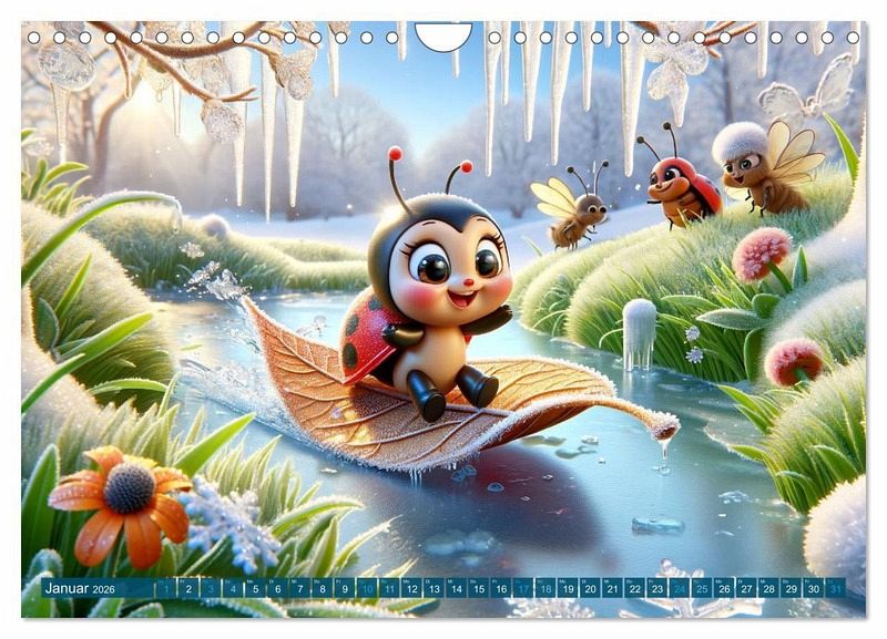 Entdecken Sie 'Kleine Käfer - große Abenteuer', den einzigartigen Kinderkalender! Jedes Blatt, ein Kunstwerk, erschaffen mit künstlicher Intelligenz, entführt in eine Welt voller Fantasie und Farbe. Monat für Monat begleiten Sie charmante Marienkäfer auf ihrer Reise durch die Jahreszeiten. Mit liebevoll gestalteten Szenen, die die Neugier wecken und zum Träumen einladen, ist dieser Kalender ein Fenster in eine magische Naturwelt. Ideal für kleine Entdecker und perfekt, um die Vorfreude auf jeden neuen Monat zu steigern!