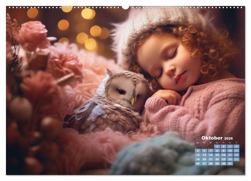 Erleben Sie mit unserem Kalender "Magische Schlafmomente" den Zauber süßer Träume. Monat für Monat entführt er Sie in intime Schlafmomente, in denen Babys liebevoll mit niedlichen Tierbabies kuscheln. Die Kunstfotografien, geschaffen durch künstliche Intelligenz, sind ein herzliches Geschenk für Eltern und Tierliebhaber. Bestellen Sie jetzt und tauchen Sie ein in eine Welt voller Poesie und Zärtlichkeit.