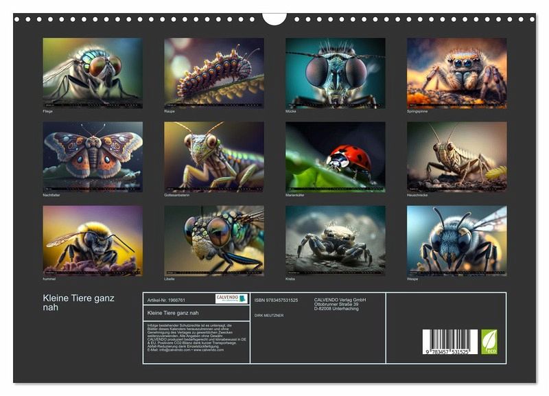 QUALITÄT - Hochwertiger Fotokalender mit 12 wunderschönen Motiven auf lichtbeständigem Bilderdruckpapier, robuste Spiralbindung mit Aufhängebügel.NACHHALTIG - deutliche Abfallreduzierung durch bedarfsgerechte Einzelstückfertigung, umweltfreundliches FSC-zertifiziertes Papier, Produktion in Deutschland, klimabewusste Logistik.PERFEKTES GESCHENK - Kalender für Freunde und Familie, für Kinder und Erwachsene, jung und alt, zu Weihnachten, Geburtstag oder zwischendurch.VIELFALT - Bildkalender in verschiedenen Formaten, z.B. DIN A5, DIN A4, DINA3 sowie DIN A2. Ob Naturmotiv, Gemälde oder Fotos, ideal für ein persönliches Wohlfühlambiente.Farbenprächtige Makrobilder von Insekten, Spinnen und kleinen Tieren von Autor(in): Dirk Meutzner