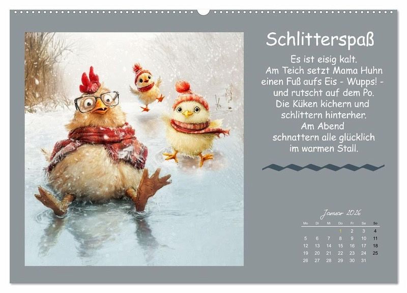 Dieser liebevoll illustrierte Kinderkalender begleitet die Kleinsten mit kurzen, fröhlichen Tiergeschichten durch das ganze Jahr. Ob lustige Hühner im Januar oder freche Frösche im Mai - jeden Monat wartet eine neue, bezaubernde Geschichte darauf, entdeckt zu werden. Perfekt zum Vorlesen, Staunen und Lachen - ein tierischer Begleiter für jeden Tag! Ideal für Kinder im Vorschulalter und ein schönes Ritual für Eltern, Großeltern oder Erzieher_innen. Die Bilder sind mit Unterstützung von KI entstanden, wurden künstlerisch gestaltet und liebevoll in Szene gesetzt.