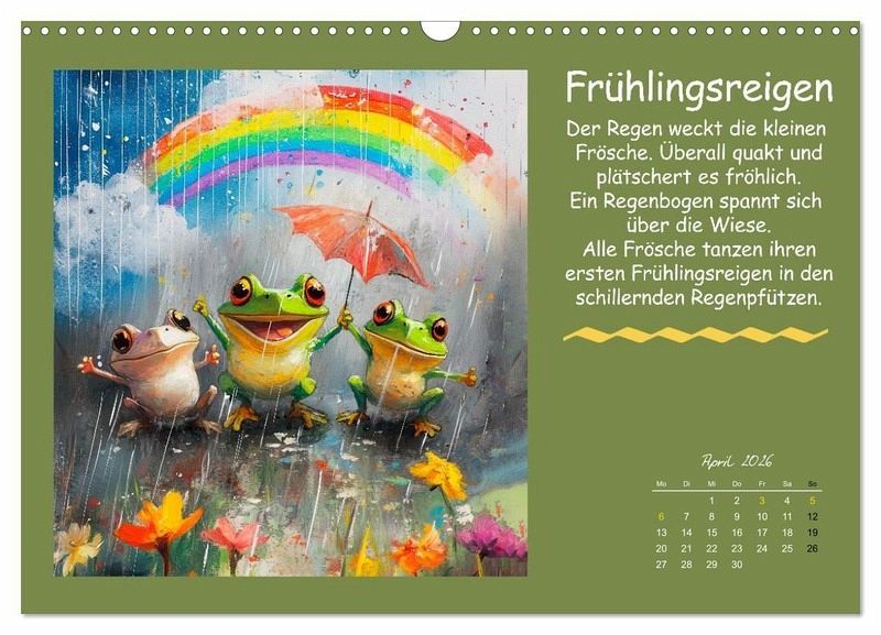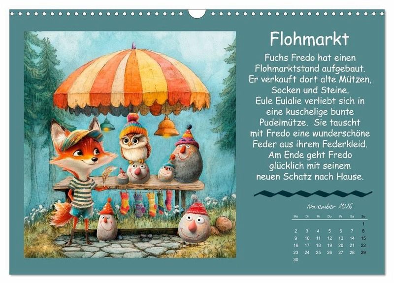 Dieser liebevoll illustrierte Kinderkalender begleitet die Kleinsten mit kurzen, fröhlichen Tiergeschichten durch das ganze Jahr. Ob lustige Hühner im Januar oder freche Frösche im Mai - jeden Monat wartet eine neue, bezaubernde Geschichte darauf, entdeckt zu werden. Perfekt zum Vorlesen, Staunen und Lachen - ein tierischer Begleiter für jeden Tag! Ideal für Kinder im Vorschulalter und ein schönes Ritual für Eltern, Großeltern oder Erzieher_innen. Die Bilder sind mit Unterstützung von KI entstanden, wurden künstlerisch gestaltet und liebevoll in Szene gesetzt.