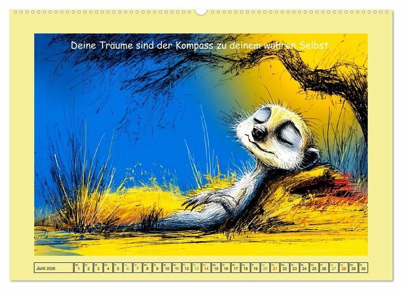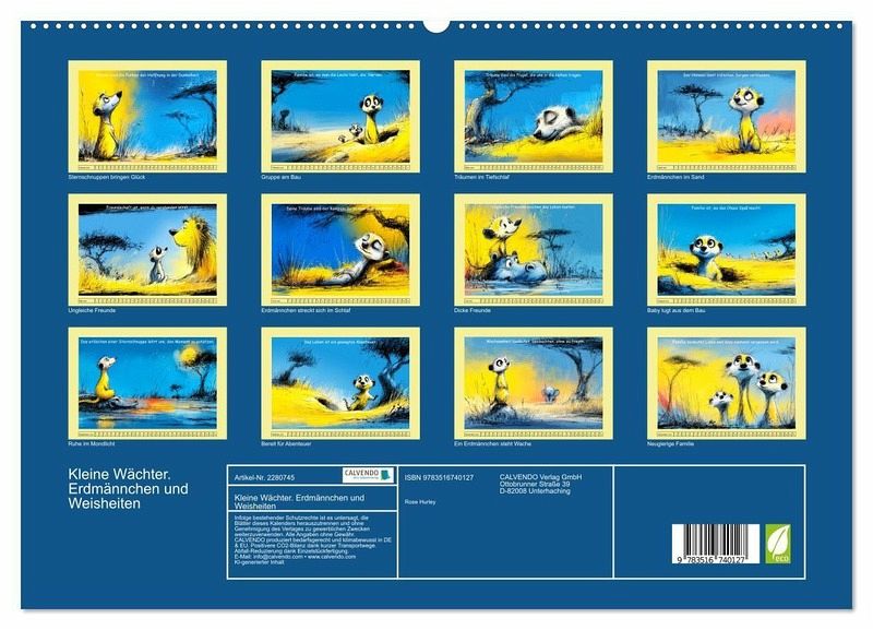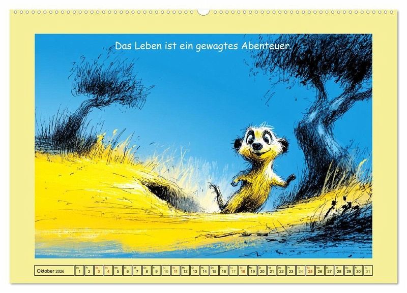 Dieser Kalender zeigt eine Welt kleiner Erdmännchen, die fröhlich, wachsam und voller Lebenslust ihre Umgebung erkunden. Die niedlichen Cartoons fangen Momente ein, die von Freundschaft, Mut, Neugier und leichtem Humor erzählt sind. Jedes Motiv wurde mit der Hilfe von KI erstellt und trägt eine Weisheit, die warm, positiv und manchmal zum Schmunzeln einlädt. Ein Kalender, der jeden Monat ein kleines Stück Sonne ins Herz bringt.