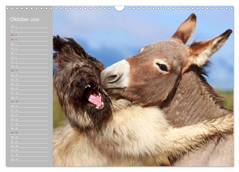 Esel sind etwas besonderes. Sie sind klug und sehr hübsch anzusehen. Und wie man sieht, können sogar echte Freundschaften zwischen Esel und Hunden entstehen. Ein süßer Kalender mit Planer-Funktion für jeden Esel- und Hundefreund.