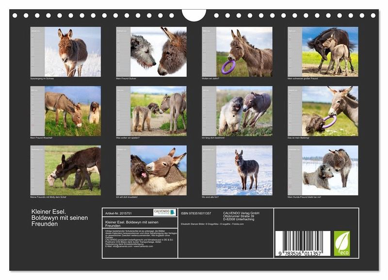 QUALITÄT - Hochwertiger Fotokalender mit 12 wunderschönen Motiven auf lichtbeständigem Bilderdruckpapier, robuste Spiralbindung mit Aufhängebügel.NACHHALTIG - deutliche Abfallreduzierung durch bedarfsgerechte Einzelstückfertigung, umweltfreundliches FSC-zertifiziertes Papier, Produktion in Deutschland, klimabewusste Logistik.PERFEKTES GESCHENK - Kalender für Freunde und Familie, für Kinder und Erwachsene, jung und alt, zu Weihnachten, Geburtstag oder zwischendurch.VIELFALT - Bildkalender in verschiedenen Formaten, z.B. DIN A5, DIN A4, DIN A3 sowie DIN A2. Ob Naturmotiv, Gemälde oder Fotos, ideal für ein persönliches Wohlfühlambiente.Ein niedlicher Esel mit seinen Freunden von Autor(in): Elisabeth Stanzer