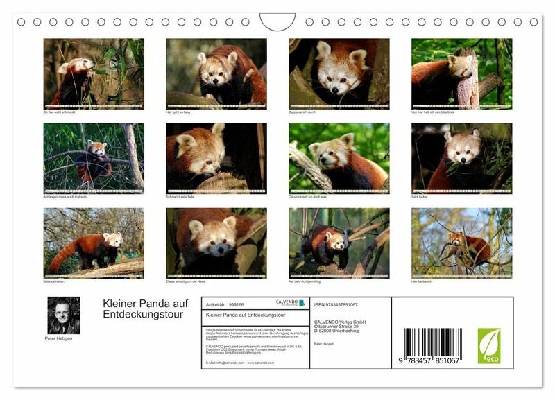 QUALITÄT - Hochwertiger Fotokalender mit 12 wunderschönen Motiven auf lichtbeständigem Bilderdruckpapier, robuste Spiralbindung mit Aufhängebügel.NACHHALTIG - deutliche Abfallreduzierung durch bedarfsgerechte Einzelstückfertigung, umweltfreundliches FSC-zertifiziertes Papier, Produktion in Deutschland, klimabewusste Logistik.PERFEKTES GESCHENK - Kalender für Freunde und Familie, für Kinder und Erwachsene, jung und alt, zu Weihnachten, Geburtstag oder zwischendurch.VIELFALT - Bildkalender in verschiedenen Formaten, z.B. DIN A5, DIN A4, DIN A3 sowie DIN A2. Ob Naturmotiv, Gemälde oder Fotos, ideal für ein persönliches Wohlfühlambiente.Ein kleiner Panda geht auf große Entdeckungstour. von Autor(in): Peter Hebgen