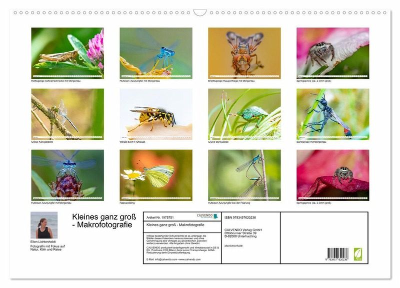 QUALITÄT - Hochwertiger Fotokalender mit 12 wunderschönen Motiven auf lichtbeständigem Bilderdruckpapier, robuste Spiralbindung mit Aufhängebügel.NACHHALTIG - deutliche Abfallreduzierung durch bedarfsgerechte Einzelstückfertigung, umweltfreundliches FSC-zertifiziertes Papier, Produktion in Deutschland, klimabewusste Logistik.PERFEKTES GESCHENK - Kalender für Freunde und Familie, für Kinder und Erwachsene, jung und alt, zu Weihnachten, Geburtstag oder zwischendurch.VIELFALT - Bildkalender in verschiedenen Formaten, z.B. DIN A5, DIN A4, DIN A3 sowie DIN A2. Ob Naturmotiv, Gemälde oder Fotos, ideal für ein persönliches Wohlfühlambiente.Makrofotografie von Insekten von Autor(in): ellenlichtenheldt