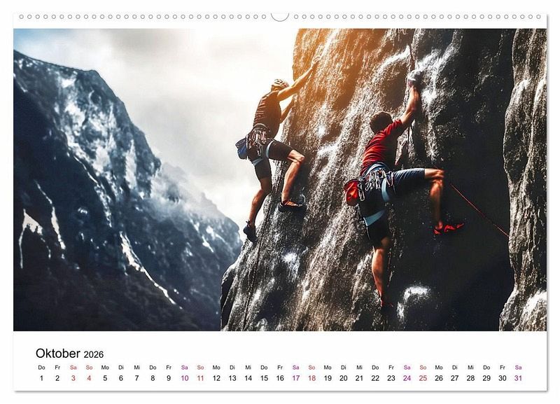 Dieser Kalender ist eine atemberaubende Hommage an alle, die die steilsten Wände bezwingen und bei denen jeder Aufstieg eine Reise ins Unbekannte ist. Lassen Sie sich faszinieren von diesen mutigen Sportlern, die sich mit Entschlossenheit und Abenteuerlust durch das raue, zerklüftete Terrain bewegen. Spüren Sie das Adrenalin und erleben Sie die Intensität beim Erklimmen des Berges. Der Fotokünstler Peter Roder hat hervorragende KI-Bilder gestaltet und zusammengestellt. Ein Muss für alle Kletterer, Bergfans und Naturliebhaber.