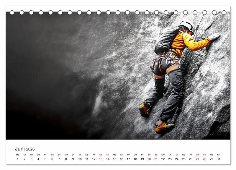 Dieser Kalender ist eine atemberaubende Hommage an alle, die die steilsten Wände bezwingen und bei denen jeder Aufstieg eine Reise ins Unbekannte ist. Lassen Sie sich faszinieren von diesen mutigen Sportlern, die sich mit Entschlossenheit und Abenteuerlust durch das raue, zerklüftete Terrain bewegen. Spüren Sie das Adrenalin und erleben Sie die Intensität beim Erklimmen des Berges. Der Fotokünstler Peter Roder hat hervorragende KI-Bilder gestaltet und zusammengestellt. Ein Muss für alle Kletterer, Bergfans und Naturliebhaber.