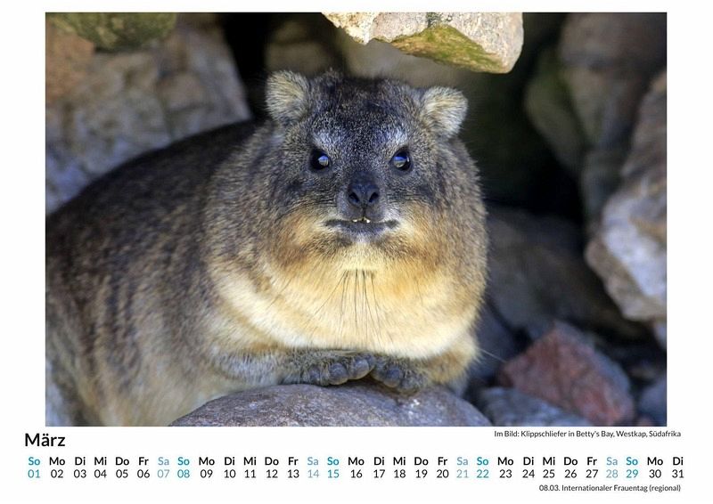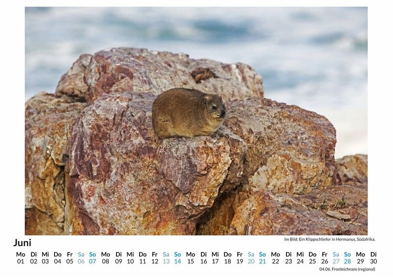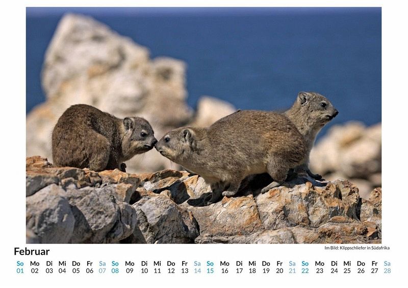 Entdecken Sie die faszinierende Welt der Klippschliefer mit unserem exklusiven Monats-Wandkalender! Dieser Kalender zeigt 12 liebevoll ausgewählte Motive der charmanten, kleinen Säugetiere, die in den Felsen Afrikas und des Nahen Ostens leben. Gedruckt auf hochwertigem, lichtbeständigem Bilderdruckpapier, bringt er die Schönheit der Natur direkt in Ihr Zuhause. Jeder Kalender wird in Deutschland auf FSC-zertifiziertem Papier produziert - für ein umweltbewusstes Kauferlebnis. Perfekt als Geschenk oder für Ihre eigenen vier Wände. Holen Sie sich jetzt ein Stück Wildnis nach Hause und lassen Sie sich Monat für Monat von den Klippschliefern verzaubern! Hochwertig Erleben Sie ein Jahr voller Eleganz mit unserem Premium-Fotokalender. Jedes der 12 Motive ist auf hochwertigem, lichtbeständigem Bilderdruckpapier gedruckt, um die Lebendigkeit jedes Bildes zu bewahren. Die robuste Spiralbindung gewährleistet Langlebigkeit und einfache Handhabung. Nachhaltig Unser Engagement für die Umwelt spiegelt sich in jedem Exemplar wider. Durch die Produktion auf Abruf reduzieren wir signifikant unseren Abfall. Wir verwenden ausschließlich umweltfreundliches, FSC-zertifiziertes Papier. Stolz gefertigt in Deutschland, achten wir bei unserer Logistik auf Klimaschutz, um unseren ökologischen Fußabdruck zu minimieren. Das ideale Geschenk Dieser Kalender ist das perfekte Präsent für jeden Anlass - ob Weihnachten, Geburtstage oder einfach als liebevolle Aufmerksamkeit zwischendurch. Geeignet für Freunde, Familie, Kinder und Erwachsene gleichermaßen, bereichert er jedes Zuhause mit seiner Vielfalt und Schönheit, unabhängig vom Alter der Beschenkten.