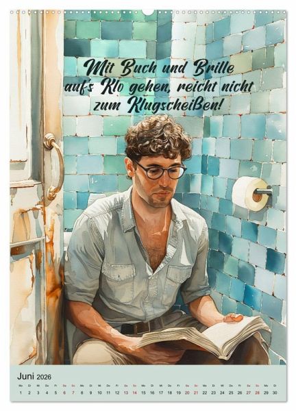 Brauchst du etwas, um dein Badezimmer aufzupeppen? Dann ist der "Klo-Sprüche Kalender" genau das Richtige für dich! Jeden Monat ein lustiger Spruch, der dich bei deiner täglichen Routine zum Schmunzeln bringt. Dank modernster KI sind die begleitenden Bilder passend zu den Sprüchen. Warum also nicht etwas Spaß ins Badezimmer bringen?