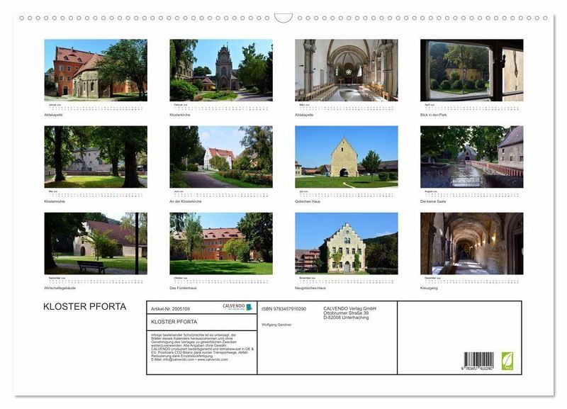 QUALITÄT - Hochwertiger Fotokalender mit 12 wunderschönen Motiven auf lichtbeständigem Bilderdruckpapier, robuste Spiralbindung mit Aufhängebügel.NACHHALTIG - deutliche Abfallreduzierung durch bedarfsgerechte Einzelstückfertigung, umweltfreundliches FSC-zertifiziertes Papier, Produktion in Deutschland, klimabewusste Logistik.PERFEKTES GESCHENK - Kalender für Freunde und Familie, für Kinder und Erwachsene, jung und alt, zu Weihnachten, Geburtstag oder zwischendurch.VIELFALT - Bildkalender in verschiedenen Formaten, z.B. DIN A5, DIN A4, DIN A3 sowie DIN A2. Ob Naturmotiv, Gemälde oder Fotos, ideal für ein persönliches Wohlfühlambiente.An der Straße der Romanik liegt die ehemalige Zisterzienserabtei Pforta. von Autor(in): Wolfgang Gerstner
