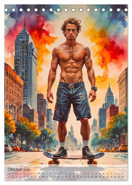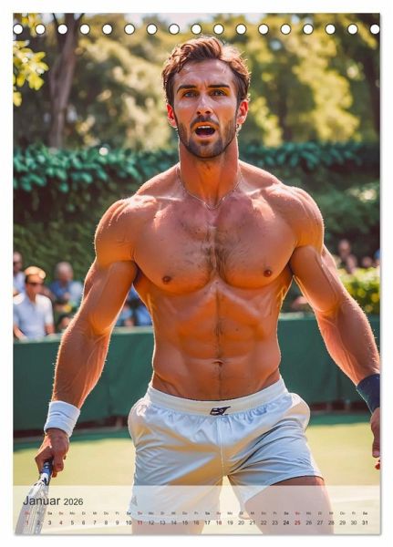 Ein Kalender mit sexy männlichen Sportlern präsentiert durchtrainierte Athleten in dynamischen Posen, die sowohl ihre sportliche Stärke als auch ihre sinnliche Seite betonen. Jede Seite fängt die perfekte Mischung aus Kraft, Ästhetik und maskuliner Attraktivität in hochwertigen KI-Illustrationen ein, die die muskulösen Körper der Sportler stilvoll in Szene setzen.