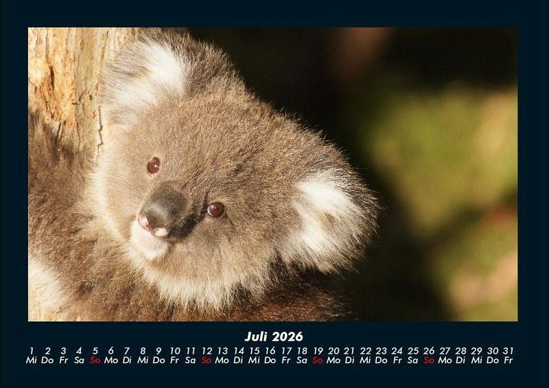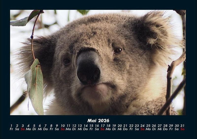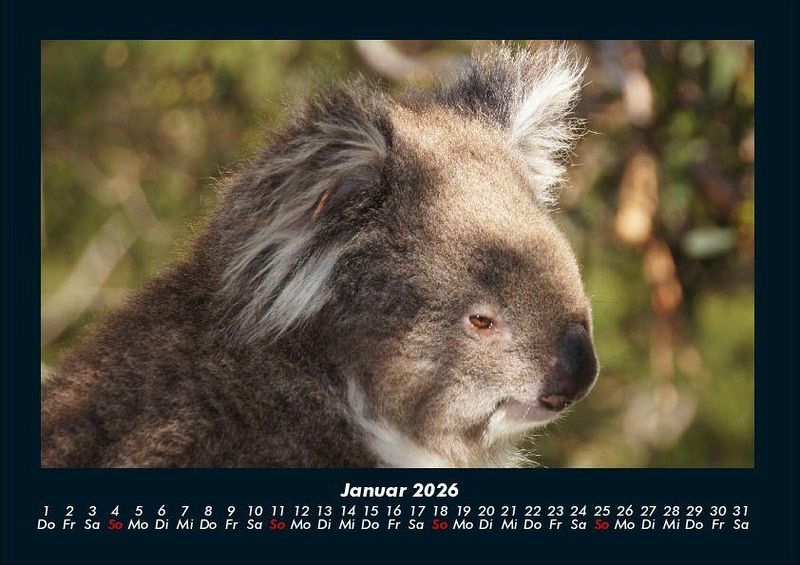 Koala 2026 Motivkalender DIN A4 Vero-Kalender erhalten Sie mit Motiven aus den verschiedensten Themenbereichen wie Natur, Blumen und Landschaft, Tierwelt, Architektur, Reise und Urlaub, Technik, Automobil und Eisenbahn, Emotionen, Sport und Musik. Gedruckt werden die Monats-Kalender aus dem Vero Verlag auf hochwertigem Kalenderbogen in Premium-Qualität und verschiedenen Größen. Die Vielfältigkeit der Motive unserer Foto-Kalender ist dank der Zusammenarbeit mit kreativen Fotografen möglich.