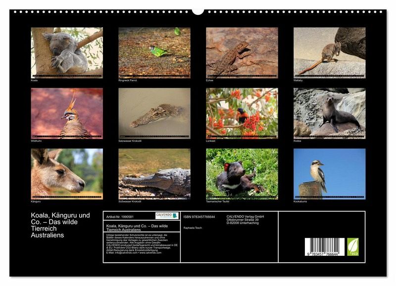 PREMIUM-LINIE - Brillanter Fotokalender mit 12 wunderschönen Motiven, Kunstdruck in Hochglanz in Museumsqualität.QUALITÄT - edle Materialien, stabile Rückwand mit 2 innovativen Einstecktaschen für eine optimale Präsentation an der Wand.NACHHALTIG - deutliche Abfallreduzierung durch bedarfsgerechte Einzelstückfertigung, umweltfreundliches FSC-zertifiziertes Papier, Produktion in Deutschland, klimabewusste Logistik.PERFEKTES GESCHENK - Kalender für Freunde und Familie, für Kinder und Erwachsene, jung und alt, zu Weihnachten, Geburtstag oder zwischendurch.Wunderschöne, bunte Impressionen der Wildtiere Australiens. von Autor(in): Raphaela Tesch