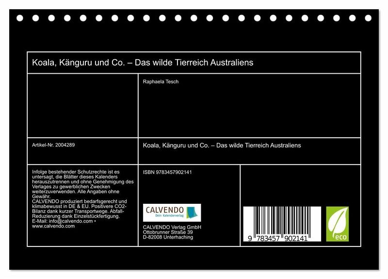 QUALITÄT - Hochwertiger Fotokalender mit 12 wunderschönen Motiven auf lichtbeständigem Bilderdruckpapier, robuste Spiralbindung.NACHHALTIG - deutliche Abfallreduzierung durch bedarfsgerechte Einzelstückfertigung, umweltfreundliches FSC-zertifiziertes Papier, Produktion in Deutschland, klimabewusste Logistik.PERFEKTES GESCHENK - Kalender für Freunde und Familie, für Kinder und Erwachsene, jung und alt, zu Weihnachten, Geburtstag oder zwischendurch.VIELFALT - Bildkalender in verschiedenen Formaten, z.B. DIN A5, DIN A4, DIN A3 sowie DIN A2. Ob Naturmotiv, Gemälde oder Fotos, ideal für ein persönliches Wohlfühlambiente.Wunderschöne, bunte Impressionen der Wildtiere Australiens. von Autor(in): Raphaela Tesch