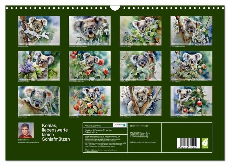 Lass dich jeden Monat von den entspanntesten Bewohnern Down Unders verzaubern! Dieser liebevoll gestaltete Kalender zeigt KI-generierte Koala-Motive, die mit ihrem Charme und ihrer Ruhe jeden Raum verschönern. Er ist perfekt für Ihr Zuhause oder Büro und eignet sich auch hervorragend als charmantes Geschenk - ein Hauch australische Gelassenheit fürs ganze Jahr.