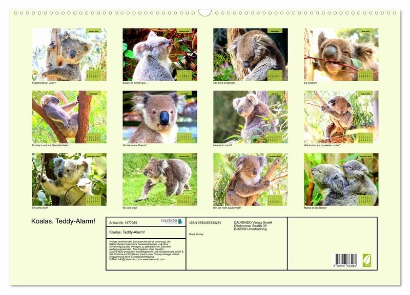 QUALITÄT - Hochwertiger Fotokalender mit 12 wunderschönen Motiven auf lichtbeständigem Bilderdruckpapier, robuste Spiralbindung mit Aufhängebügel.NACHHALTIG - deutliche Abfallreduzierung durch bedarfsgerechte Einzelstückfertigung, umweltfreundliches FSC-zertifiziertes Papier, Produktion in Deutschland, klimabewusste Logistik.PERFEKTES GESCHENK - Kalender für Freunde und Familie, für Kinder und Erwachsene, jung und alt, zu Weihnachten, Geburtstag oder zwischendurch.VIELFALT - Bildkalender in verschiedenen Formaten, z.B. DIN A5, DIN A4, DIN A3 sowie DIN A2. Ob Naturmotiv, Gemälde oder Fotos, ideal für ein persönliches Wohlfühlambiente.Die niedlichsten Tiere an Australiens Ostküste von Autor(in): Rose Hurley